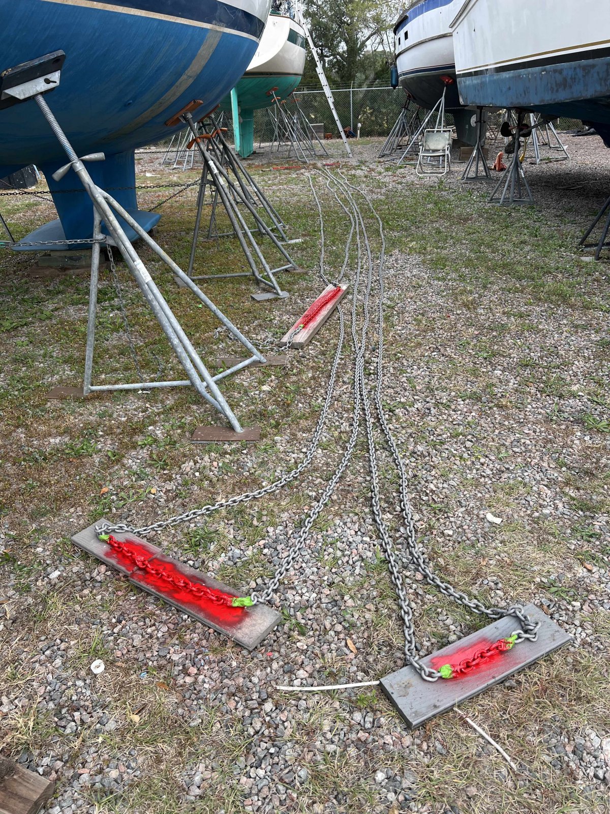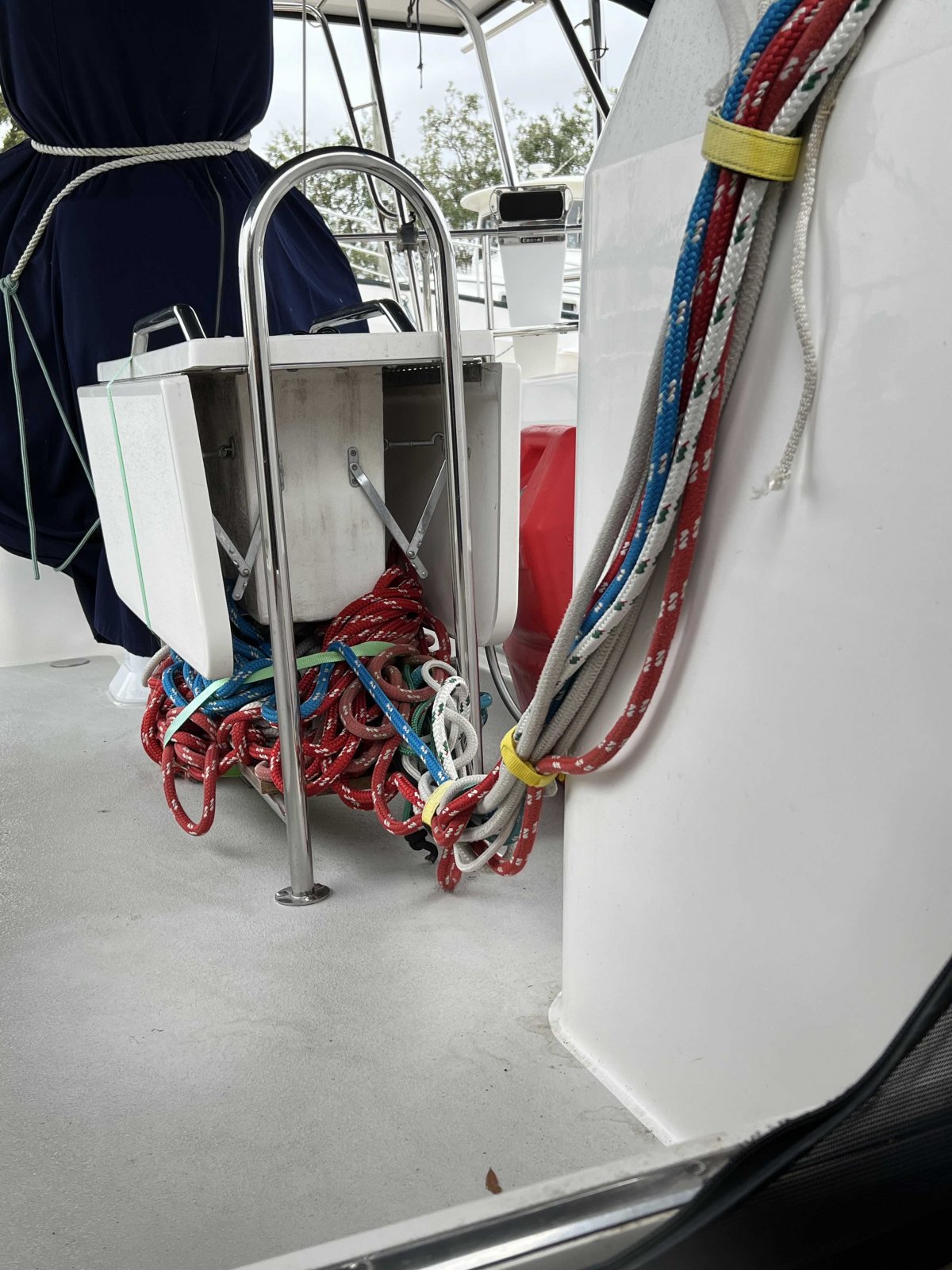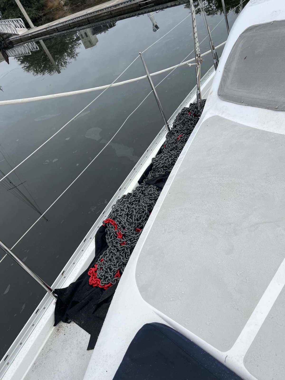 The far right shows marking the second anchor line so we know how much chain is put out when we anchor.