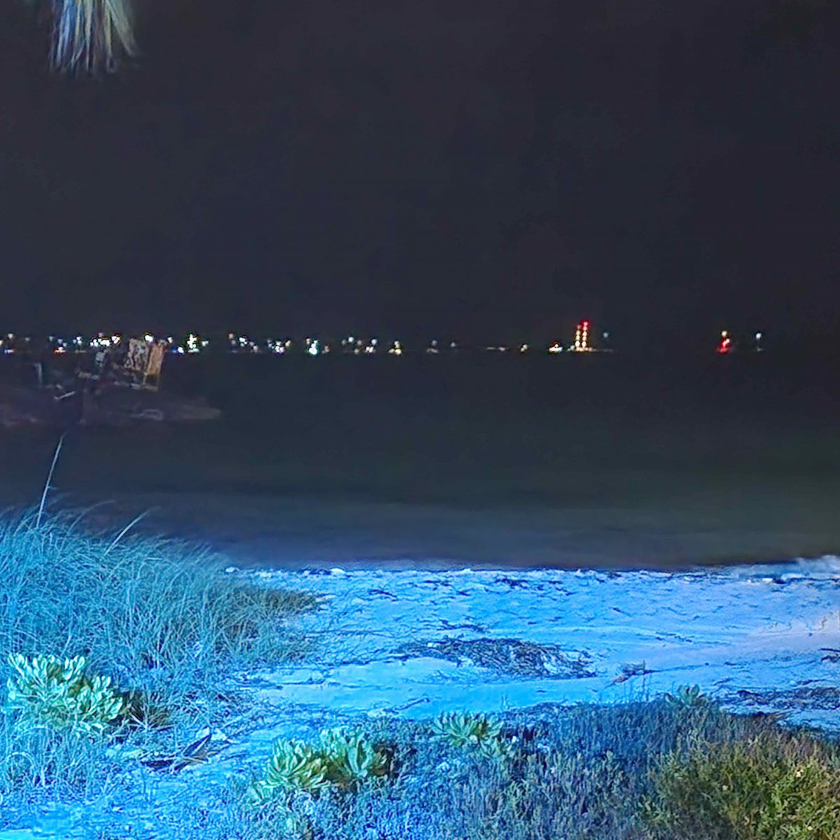 There are about 250 boats anchored across the bay all with their anchor lights on.