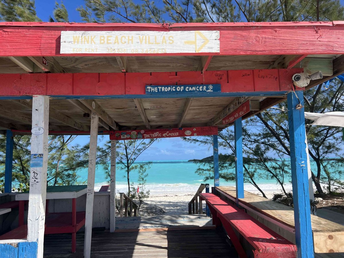 "The longest beach on the island, it is also the prettiest in the Exuma chain. Located at 23 26N 75 35W, the beach is named after the meridian line that defines the northern extent of the tropics and crosses right through it." (https://www.bahamas.com/natural-wonders/tropic-of-cancer-beach)