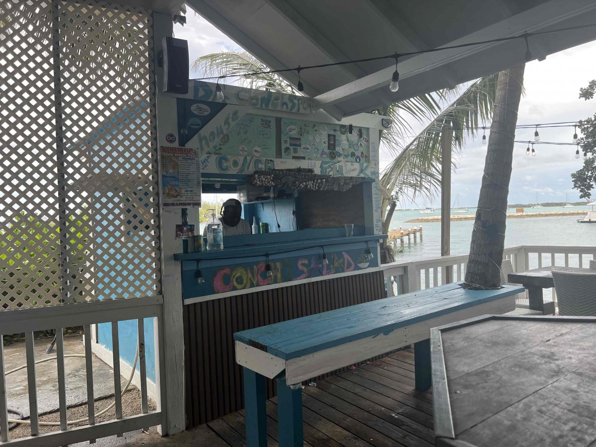 Rain and wind persisted all day. Jason and Kate rented a 4 x 4 so we took off to go to the Fish Fry. "The Fish Fry is a collection of little restaurants that cook up some of the best food on the island. Part of the fun is wandering around and choosing where you want to eat. Grab some food and a drink and either stay in your chosen restaurant or stake out a picnic bench by the water overlooking a ship graveyard." (discoverexuma.com)