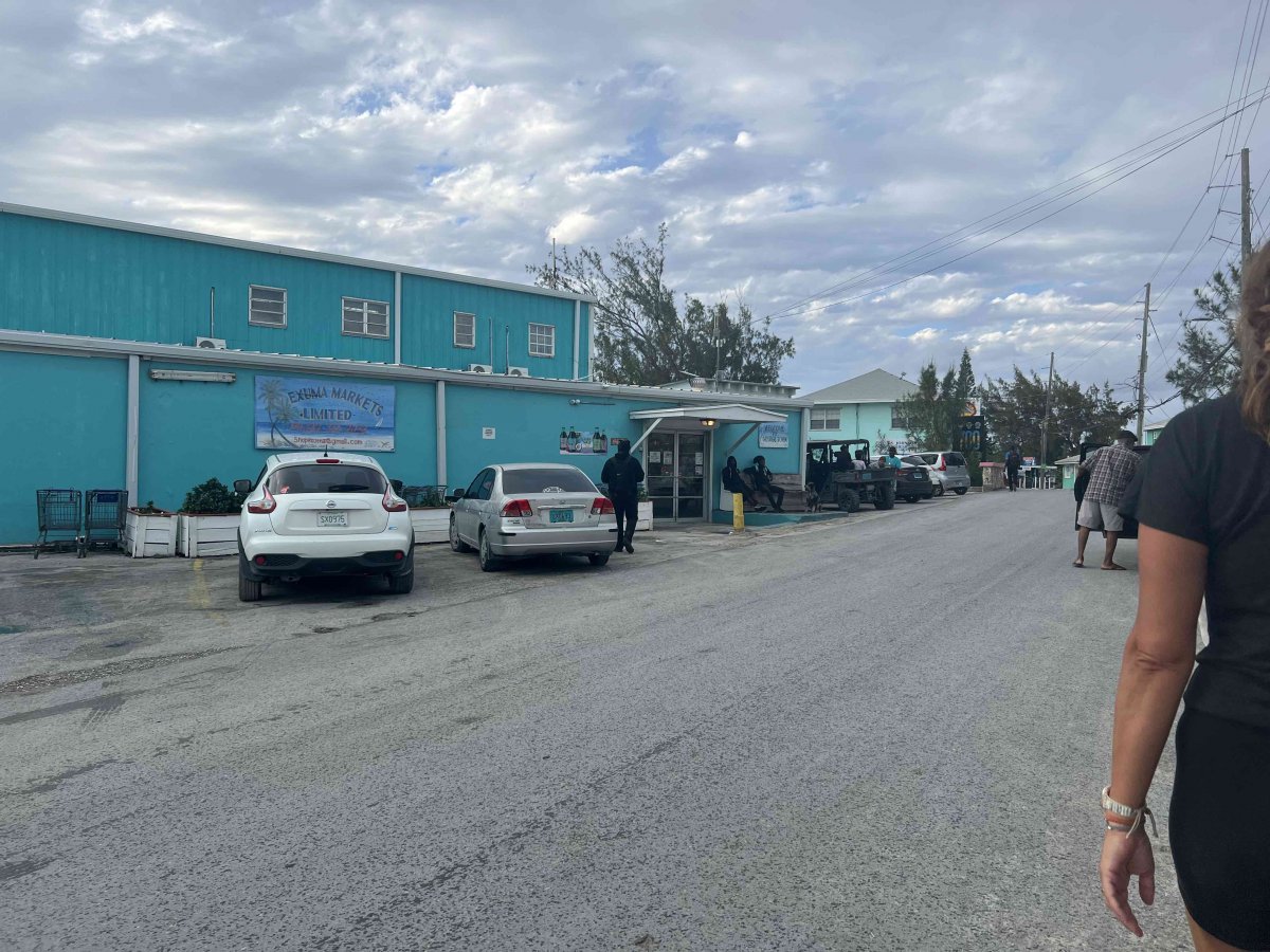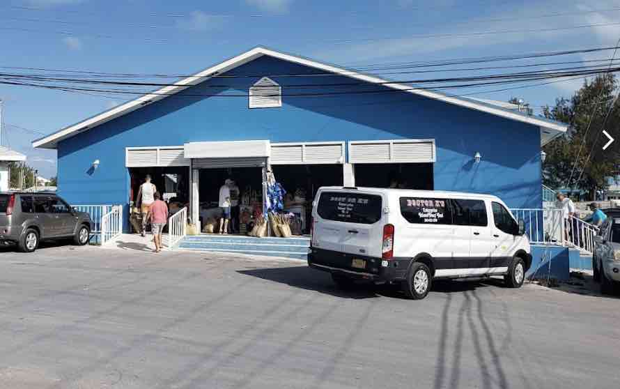 To the left is a large grocery store. Above the store pic is the salon and fresh fish store. Above is a conch stand and right is a water taxi.
