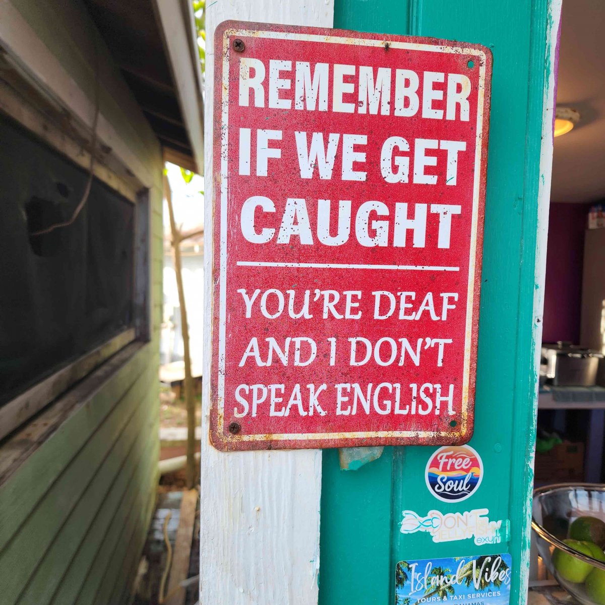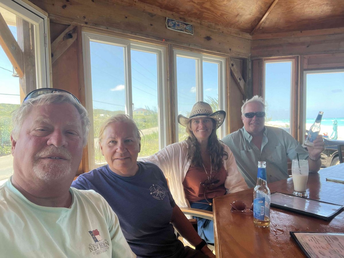 After a week of solid fun, we had to say goodby to Jason and Kate. We went to lunch at Tim's on the Bay near the airport. Great view. Great artwork. It was 5 minutes from airport so the service that was on Bahamian time wasn't so bad. (Super slow) We dropped them off in the 4 x 4 and headed back to return it before 5:30pm. Driving on the left is crazy but Kim did a great job.