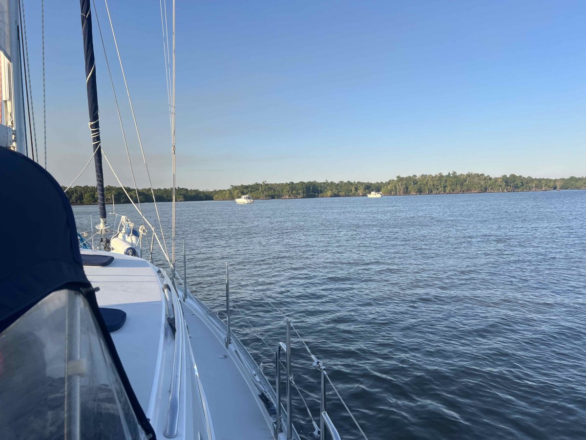 The gulf was kind to us today once we got away from land. 1-2 foot waves with light winds. We spent 9 hours on the water before we came to Shark River where we would anchor for the night. Most of the time was spent listening to audio books. I'm listening to The Lincoln Highway by Amore Towles. Excellent! Kim finished Caretakers about graveyard caretakers helping the Jews during WWII.
