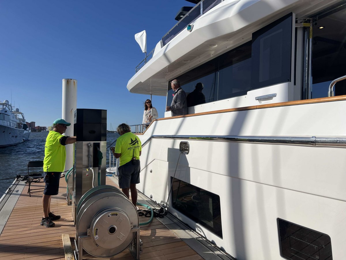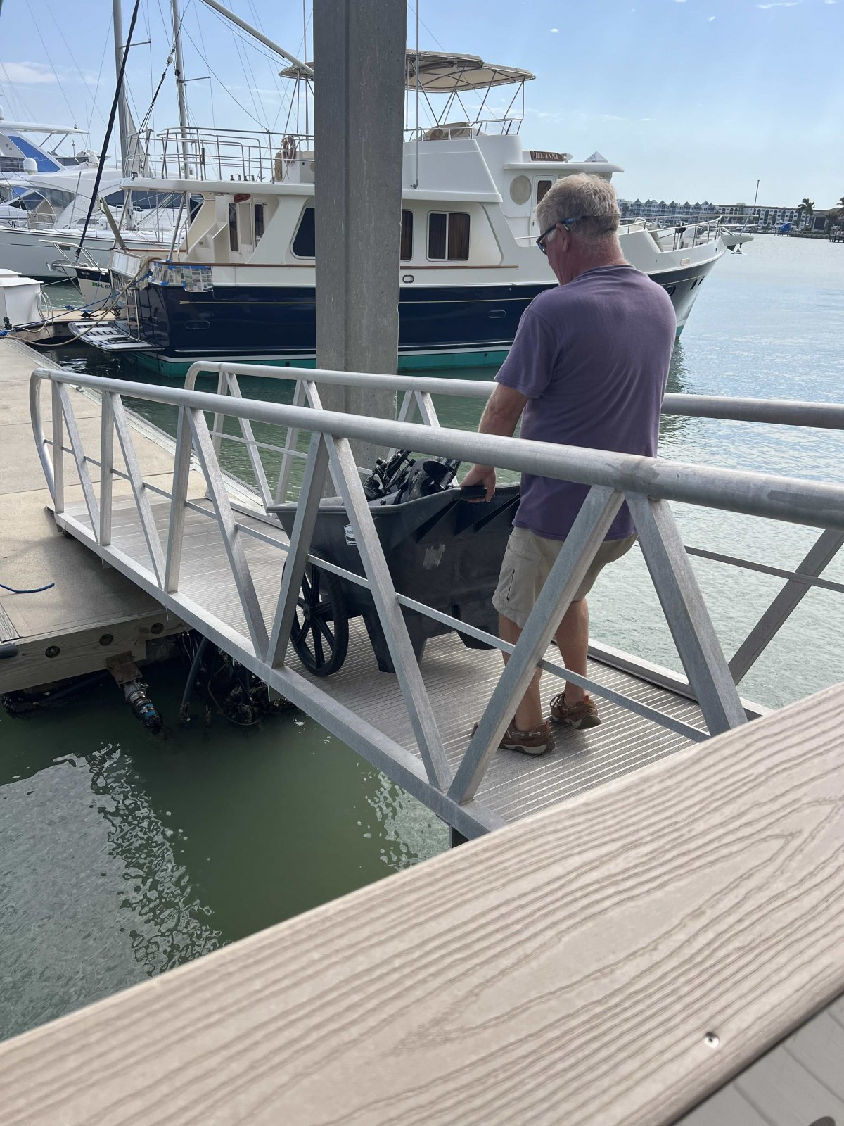 And as we all know, things do not always go as planned. Got dingy engine via marina cart and more people staring at the situation. Went to test drive the dingy and the engine still was not working like it should. Kim took it back over to Rose Marina and they felt it was the fuel line and tank. Back to West Marine. New wind instrument did not work. New one on over night delivery. We provisioned from Publix and West Marine. Laundry done!