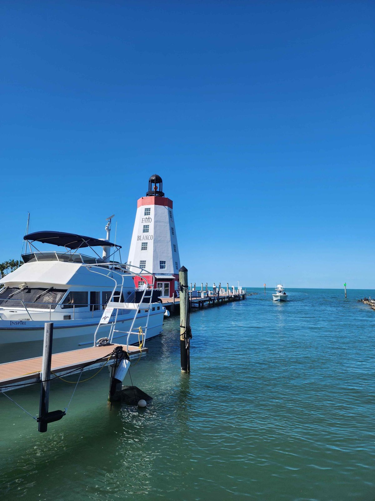 We entered Faro Blanco Marina, fueled up and Kim backed us into the slip. (He is very good at that) We walked around, walked a mile to Shuckers and Shakers/Key Fisheries for dinner. Then back home to relax. Looking forward to sitting by one of the two pools, having drinks by the pool bar and work on my tan.
