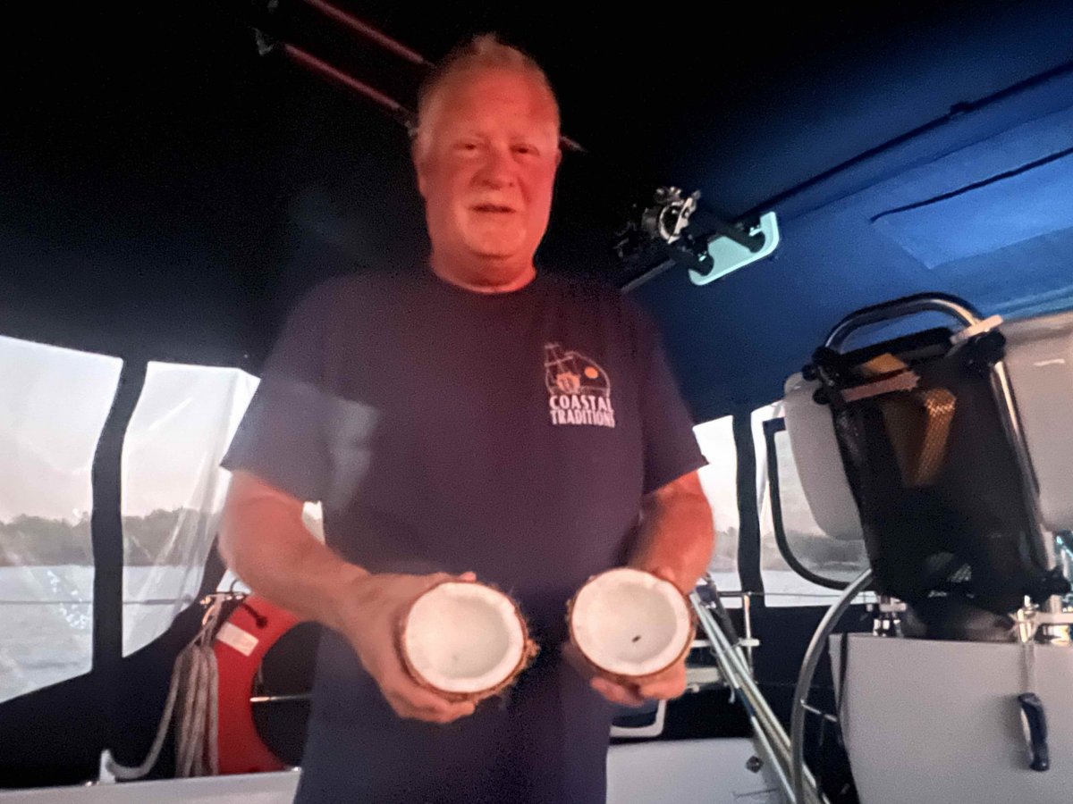 We end out our day, we watched the sunset and then Kim opened his coconut.