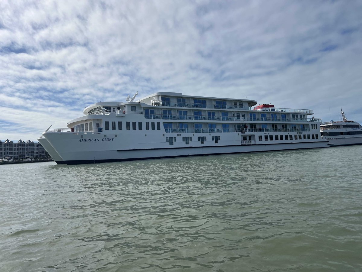 Last night's anchorage was fine except the 3 knots of current kept shifting our boat 180 degrees. Anchor held and we sorta slept. Decided to take the dingy into the island and of course we had engine issues. Current, waves, other boats surrounded us as our engine kept stalling out. Kim kept restarting the engine and limbed us to the dingy dock at Rose Marina. Passed by American Glory, a small cruise ship. Rose Marina also houses the Key West Express Ferry if anyone needs a ride.