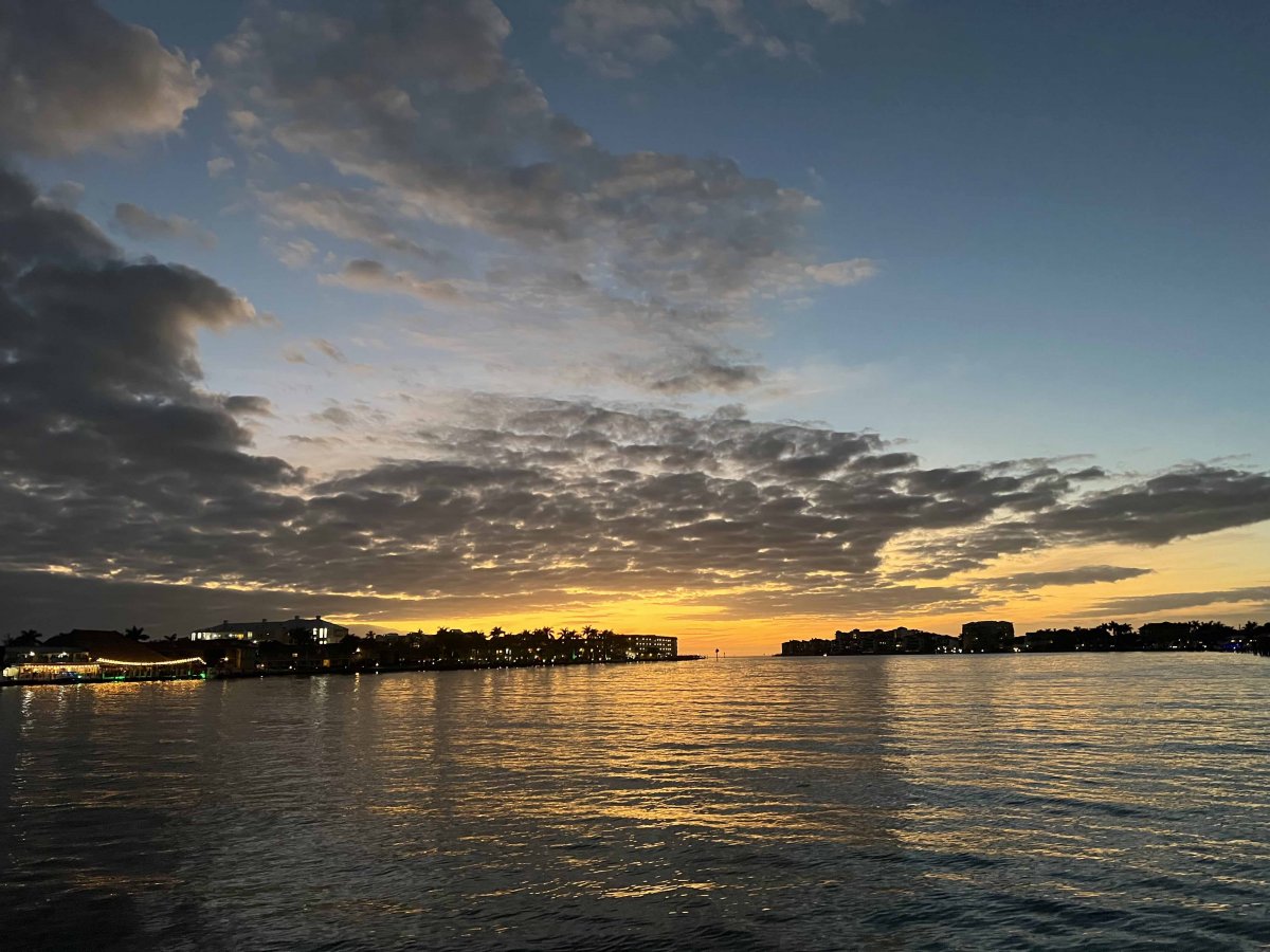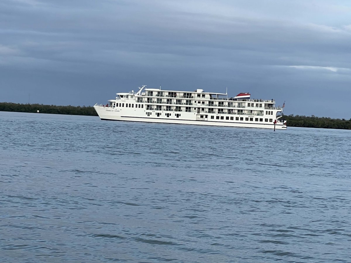 We moved to Marina @ Factory Bay to get out of the current and get some sleep. We went to Snook Inn for dinner and music and could see where we were anchored with other sailboats. Also, saw the cruise ship leave.
