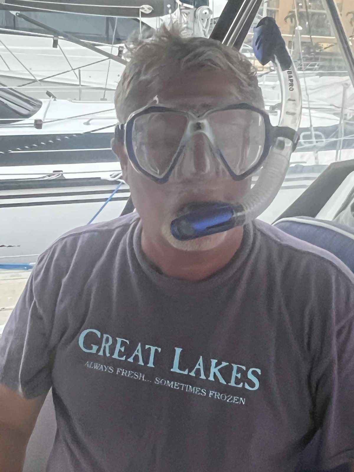 We slipped in a few boat chores also like defrosting the frig, trying to see if that crab pot is still under our boat with the crab pot but too murky, filled water tanks and still working on setting up the Epirb.