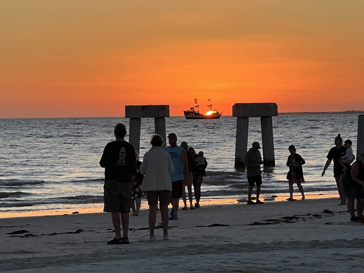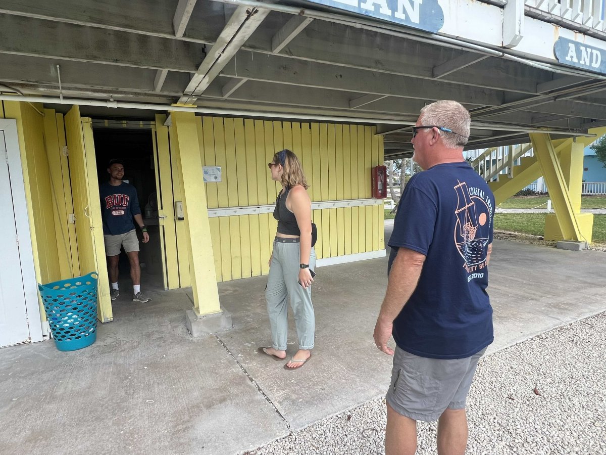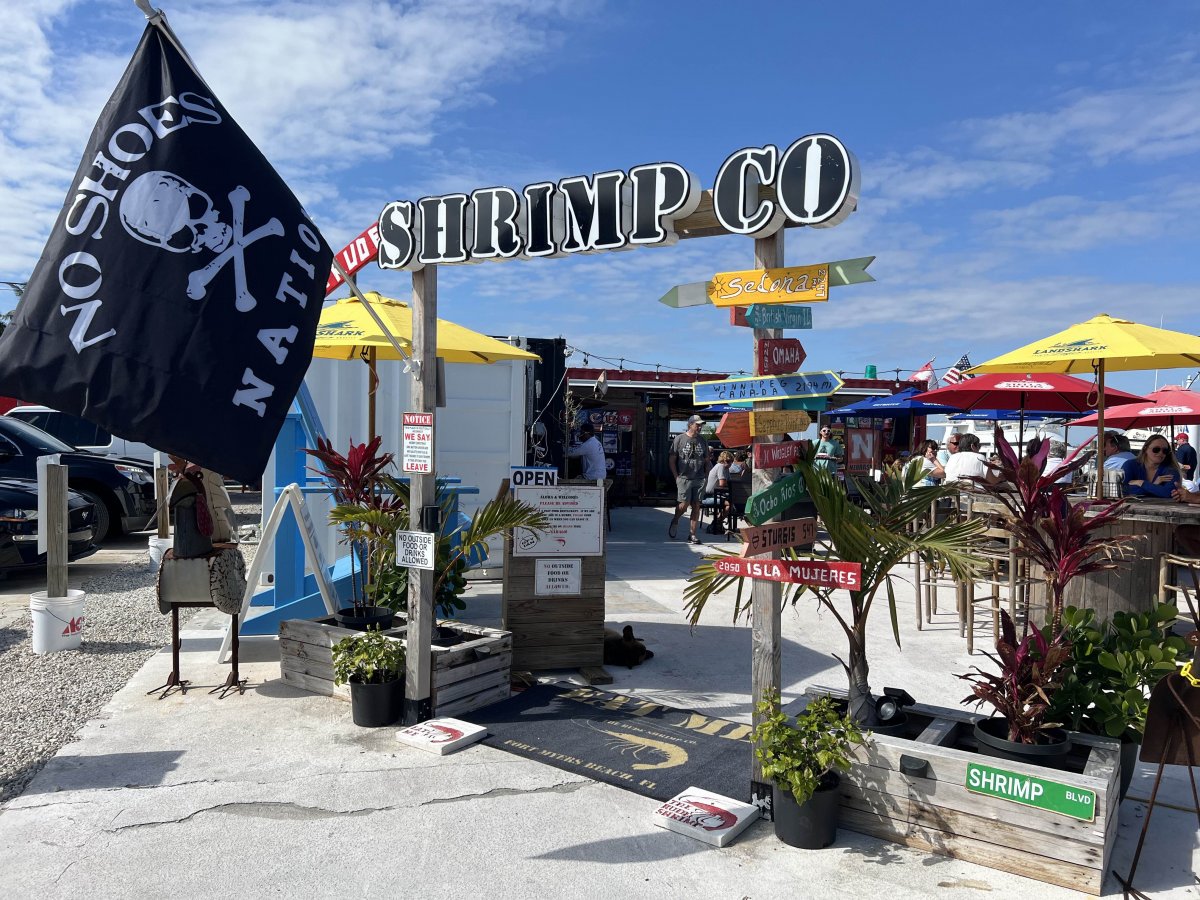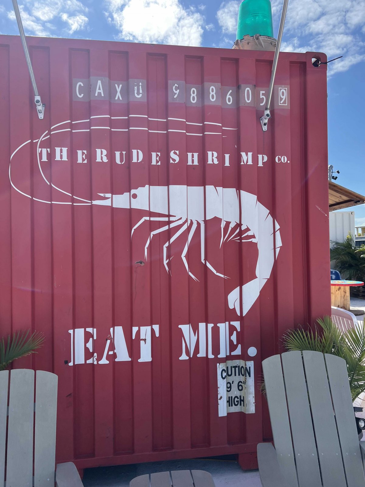 A quick snack and drink at the Rude Shrimp Co. by the Marina before we walked to the beach. Hurricane damage is very evident everywhere. This has not stopped the people from coming and enjoying restaurants that are using pop up trailers and bringing in live bands to encourage tourists to visit their establishments.
