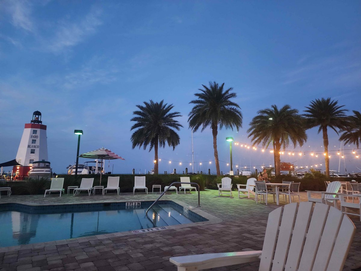 No worries though! It is not all work. We lay by the pool (there are 4 to pick from), listen to live music most every night, enjoy sunsets and sunrises, sit by fires at the end of piers, and visit with other boaters, who are doing the exact same thing.