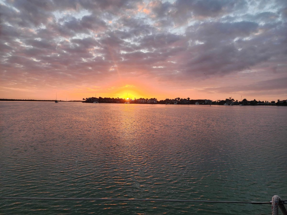 Rose at sunrise to head out to Marathon from Shark River. Calm exit but shallow! Low tide was at 6:30 am and we left around 7:30 am. So had to slowly make our way to deeper water.