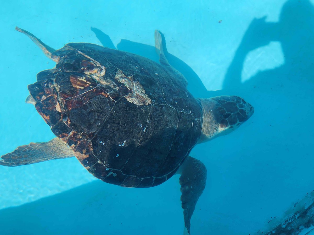 Most of the turtles at the hospital have been struck by boats so they have developed "Bubble Butt" and are permanently injured. Some have been attacked by sharks and are missing flippers.