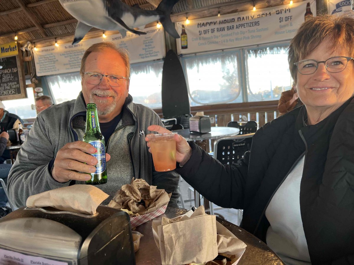 Picked up a rental car and drove to Duck Key to spend a couple of days with Cary and Cheryl Masters and of course Milo. They have a beautiful place on a canal on Duck Key. Ate good food (Stone crab claws), laughed a lot, toured Duck Key in their boat. Such a good time!