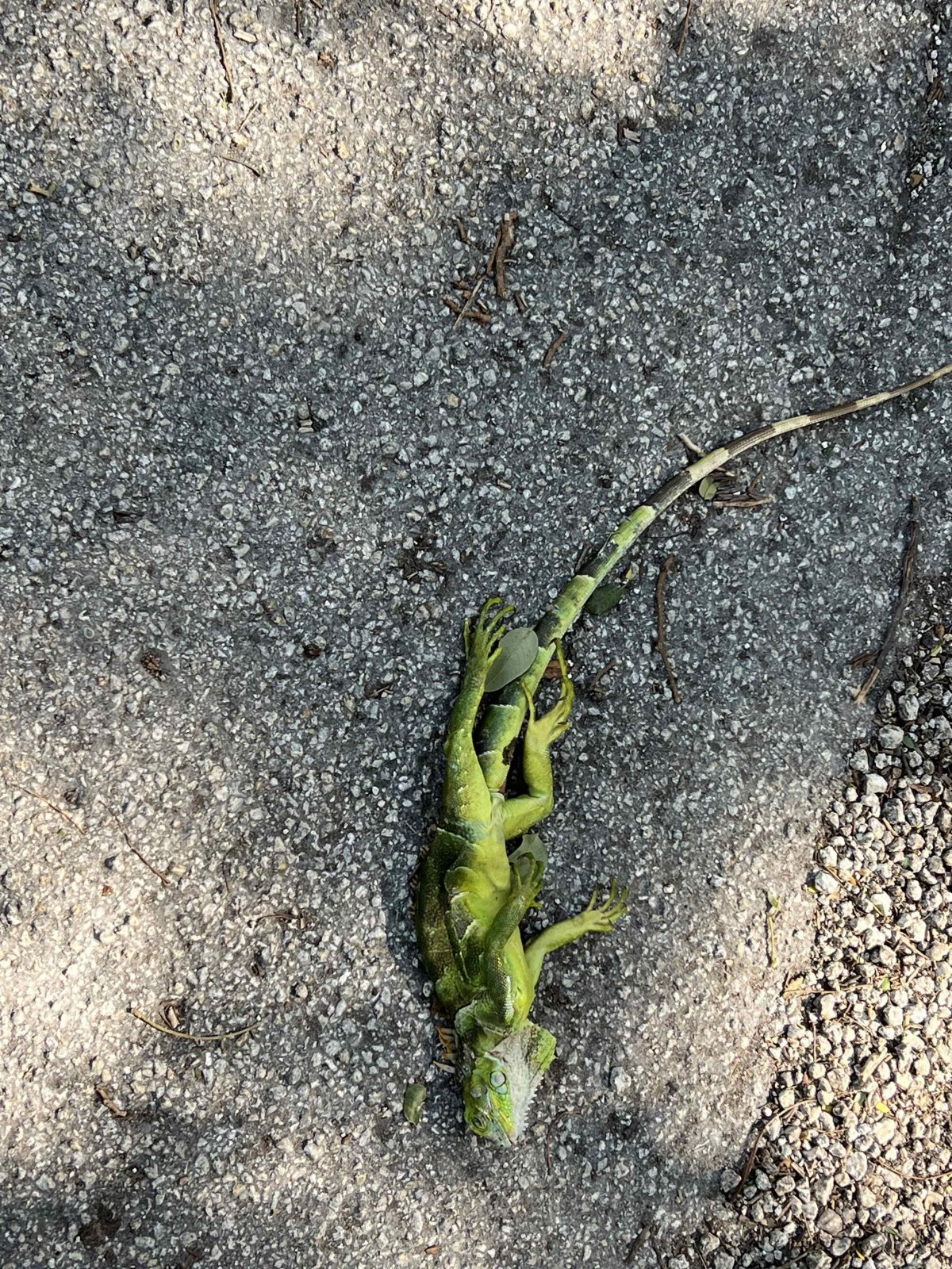 Dead, frozen Iguanas everywhere. They fell out of the trees. I almost stepped on several. Florida posted that you could scoop them up in garbage bags and drop them off at various centers for deposal or have new shoes also! LOL!