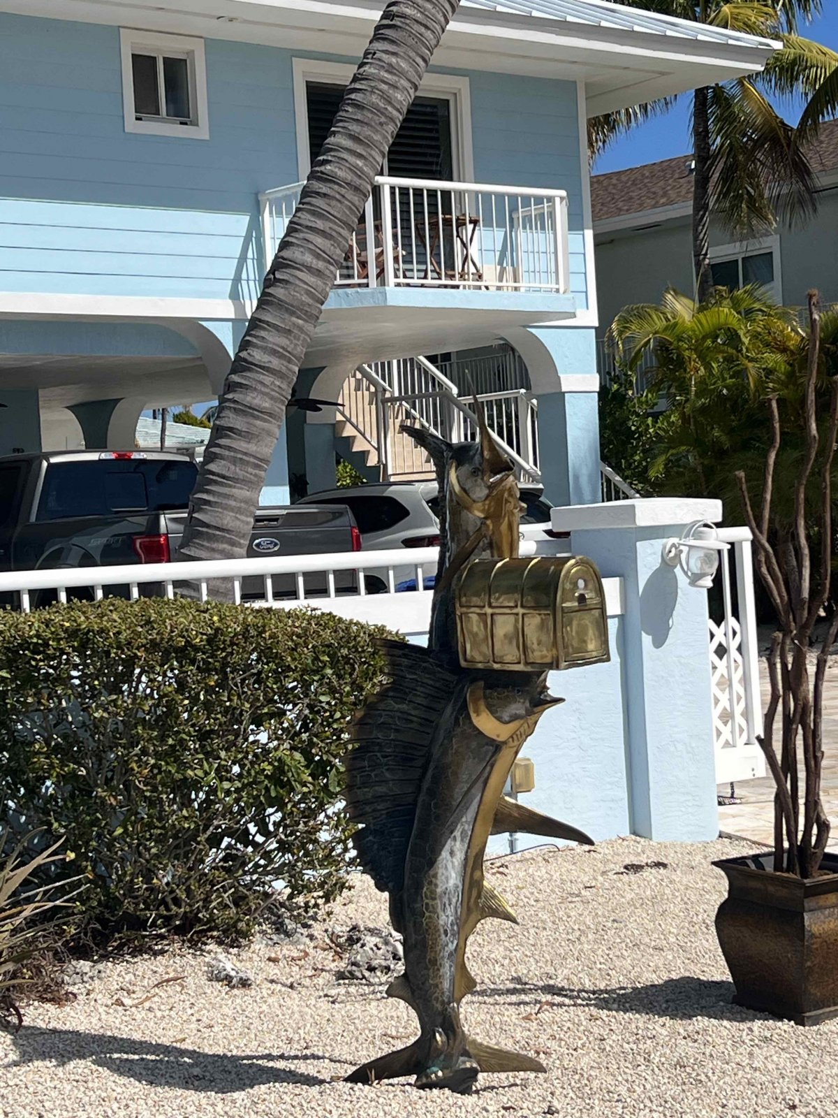 Monday, Feb. 9On our walk we found more mailboxes and a fish market. The dive boats make two trips a day.