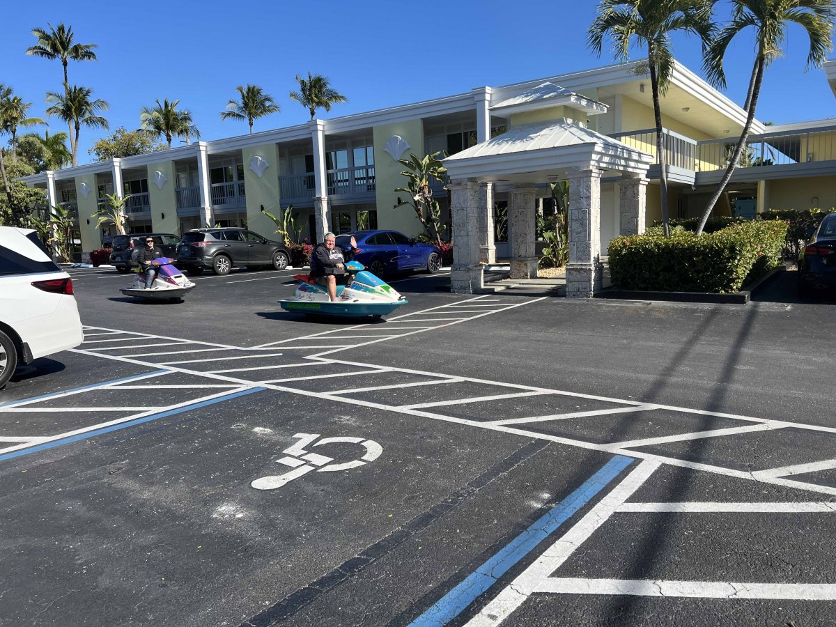 Friday, Feb. 6A cold front went through last night so we are back in sweatshirts and jeans. Decided to walk to Shell World which is 2.5 miles away. Things we saw on our way. The sea doos in the parking lot was so fun and those guys were having so much fun! Anthony's is a store Cheryl Masters introduced me to. Great swimsuits!