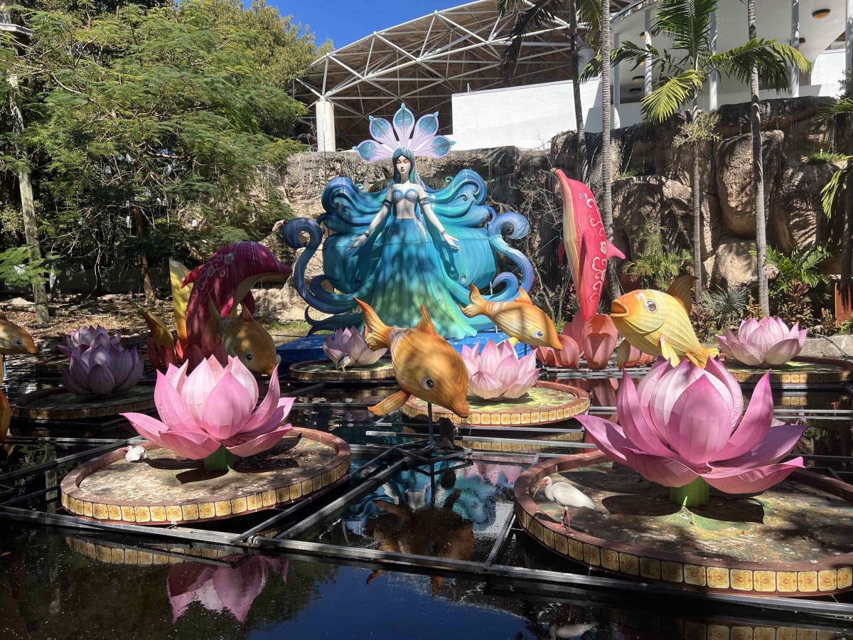 Jungle Island has amazing statues made out of fabric all around. They have lemurs, capybaras, farm animals to pet, wallaby, tortoise, budgies, macaws and FLAMINGOS! This guy to the left is #45 and seems to be the leader of the group.