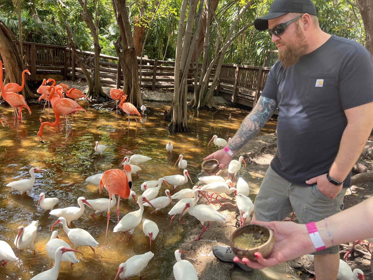 We picked Michael and Sarah up from the Fort Lauderdale-Hollywood airport around 10:30 am and headed off to Jungle Island for a Flamingo Encounter. Getting there was a challenge since it was downtown Miami but soooo worth it.