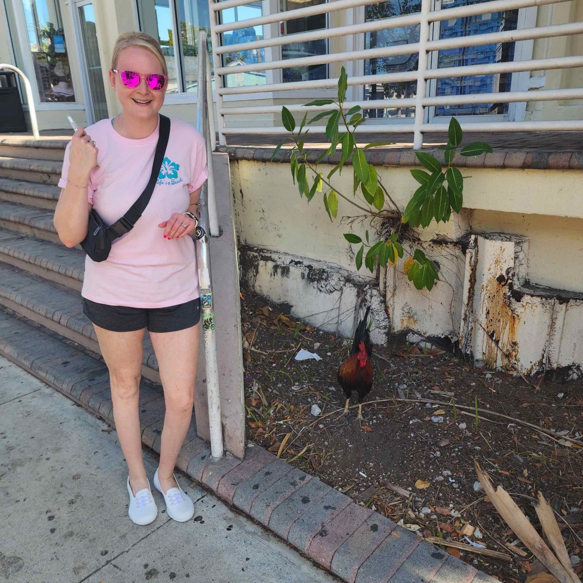 Got up early to get around a potential traffic jam in Islamorada and Pine Key. Got to Key West around 10:00 am and found parking right away! Walked the wharf and hunted for Duval Street where all the action is. Found Jimmy Buffet's former recording studio. Roosters everywhere. Randomly ran into "Bob from Michigan" and Hope. They were on a cruise ship and met us for lunch at Hog's Breathe.