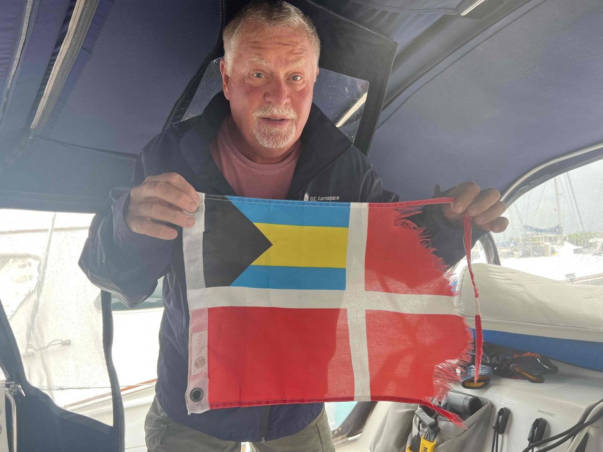 We took down our tattered Bahamas flag. It definitely shows how much wind we had. We went to Skipper's Cove for dinner Tuesday night and listened to music before we crashed early.